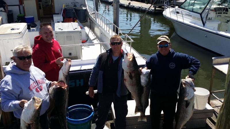Open Boat og Tuesday 4/19 & Wednesday 4/20 Next open boat bass trip is Thursday 4/21 Today we started by loading up with fresh bunker. Once we got to the fish we trolled a few nice bass then put our fresh baits out for some good action. The guys worked together with a couple fish on at a time. We kept all we could an released more for another day. More open dates on our website