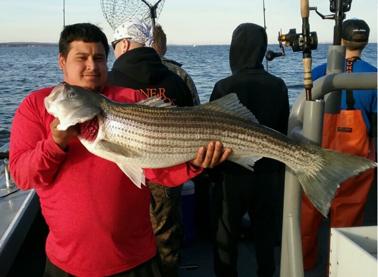 Saturday morning Capt. Tom & Gene ran a 6 am open boat Striper trip with another big crowd of new and returning faces. Again without mercy, the crew worked in harmony like a well oiled machine and proceeded to pounce on em. In the end, everyone got what they came for, tight lines, big fish, good times, big bags of filets and sore arms. Thank you to everyone who came aboard, another great day . . .