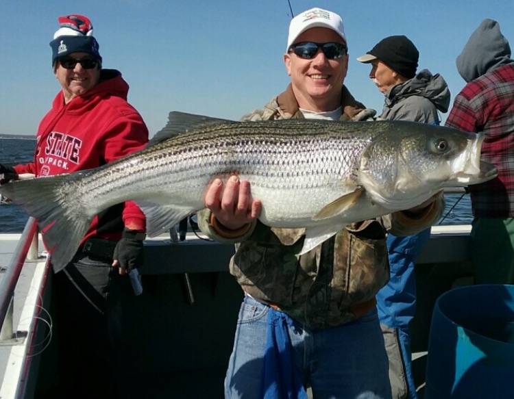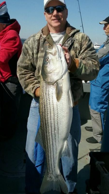Saturday afternoon the crew ran another open boat Raritan Bay Striper trip for a big crowd of great guys. Worked for em and put em in the boat, just not as good as the morning. All fish, all trips up to 27 lbs. with others returned to fight another day. Another big thank you to all who made the trip, it was nice fishing with everyone. Don't miss the next open boat trips - Monday April 18 - 6 am STRIPED BASS - FEW SPOTS REMAIN Monday April 18 - 6 am TOG - FEW SPOTS REMAIN Come out, load up, BOOK NOW and get right on em. Here's a few . . . .