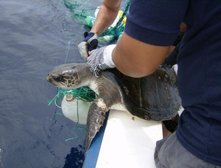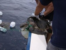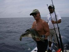 Ron - you can fish Galapagos with a local charter captain on board. We fished out of San Cristobal, where there was local Navy stationed. The local poachers worked just a few miles away. This was a drift gill net buoyed up by empty plastic milk and water jugs. No fish in it, just turtles. We brought the net back into the harbor and left it on the bow to make a little statement. One more shot.