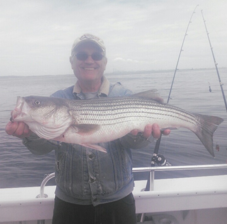 Sunday Capt. Rob & Joe ran another 6 am open boat Striper trip for a big crowd of great guys. The trip got into Bluefish action from the get go and kept everyone busy with Bass mixed in, and a lot of misses. Thank you everyone for sailing with us. Ethan was a happy camper
