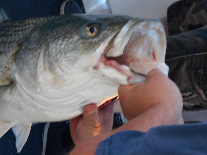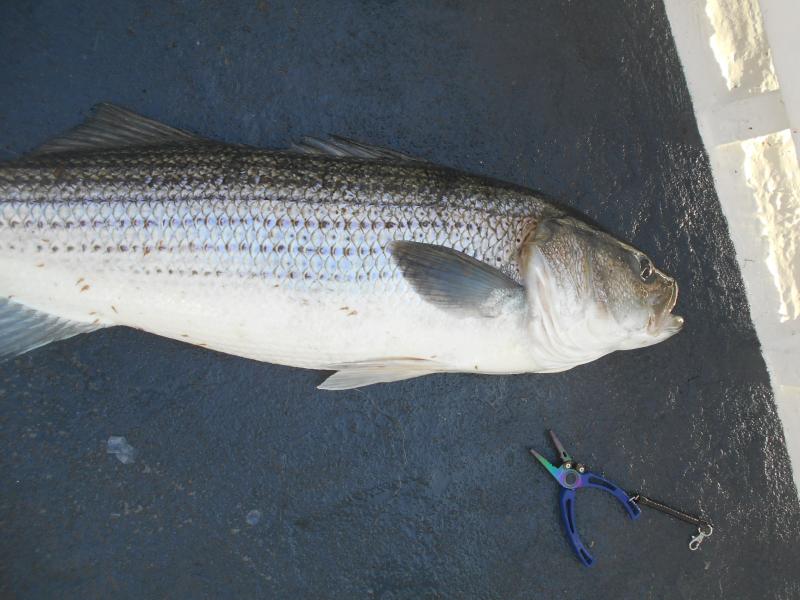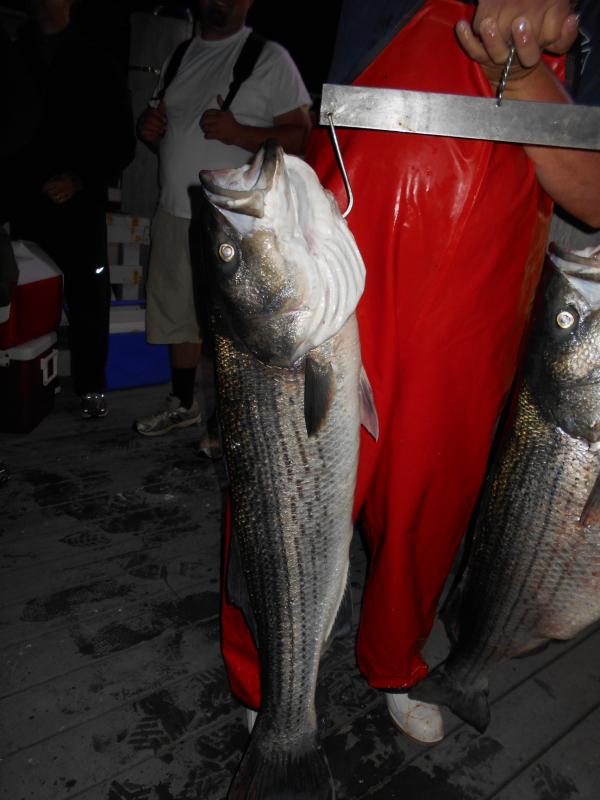 Tuesday evening Striper fishing, we had a decent day of fishing,, we also lost some nice big stripers, we could not get them over the rail.. Some of the fish that came over the rail were in the 30 lb. size. You could see the fish chasing the bunkers around the boat, it was a fun night.. Striper Fishing Every Tuesday and Thursday. Reservations Only. Live Lining Stripers. 3:30 pm to 9:30 pm Tuesday 15 persons max. -- $100.00 person Thursday 20 persons max--$85.00 person. "Call for reservations" Capt. Ron 732-977-2020