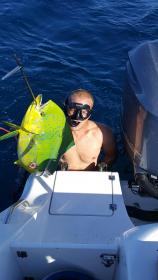 Went to the deep to try for the eyeballs. Stopped on the pots to get some meat and decided to jump in the blue ended up shoot 3 mahi with the gun and landing 12 total in a hr. Then went on the hunt trolled with the whales to 10 pm before taking the long bumpy ride home. No tuna for us and sounded like fri was a tough day for the whole fleet.