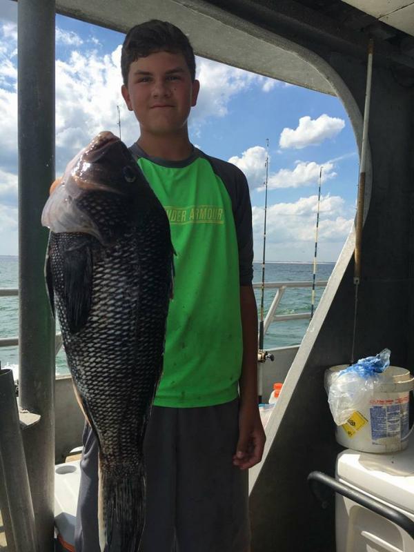 Fishing was good again Sunday. We had loads of mackerel and some sea bass. We caught fish on jigs and bait but bait was better today. The fish have moved closer to shore so our ride should not be too long tomorrow. The pool winner was: Ashton Pelton from Clayton DE with 4LB Sea Bass The big Jamaica is sailing at 7:30 a.m. every day this week for Bluefish, Mackerel, Sea Bass, ling, and Fluke. NIGHT trips sail for Blue Fish on FRIDAY, and SATURDAY nights at 7:30 p.m. this week. Afternoon Family fun trips for fluke and sea bass will sail Sunday through Wednesday from 4:30 p.m. till 8:30. We had a lot of action on our last Family Fun trip with fluke and sea bass and on the Fishing and Fireworks trip last Thursday. Fishing and Fireworks trips sail Thursday at 5PM. For reservations and further information call 732-528-5014.