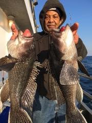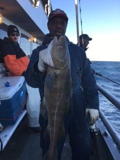 Wednesday Offshore Trip Report Giant sea bass and Jumbo Porgies We had another good trip to the offshore wrecks today. We caught giant sea bass, jumbo porgies, a couple of cod, and some blue fish. Everyone went home with plenty of fish. The pool winners were: Duc Ho from Annandale, VA with a 25lb Cod. Second place was: Sly Turner from Morristown, NJ with a 15lb Cod. A few of the passengers catching their limit were: Joe Lofink from Rehobeth Beach DE, John Cebulski from Wallington, NJ plus a 4lb flounder and some porgies, Michael Singeltary from Jacksonville FL, John Britcher from York PA, Quinten Justice from Landing NJ, Alan Callie from Morristown, NJ. There is still space available on the limited trip sailing tonight at 11PM. For reservations call 732-528-5014. The offshore season is just getting started so fishing will only improve. This is the time of the year when we catch some of the biggest sea bass and jumbo porgies, along with some Cod and Pollock. The big Jamaica scheduled to sail to the offshore wrecks 4 days a week. We will be fishing every Wednesday Friday Saturday and Sunday leaving 11 p.m. tonight before period space is limited reservations can be purchased in advance. Between Christmas and New Year's Day we will sail almost everyday. On Thanksgiving Day there is a special Striped Bass trip sailing 6AM To 12 noon. For further information call 732-528-5014