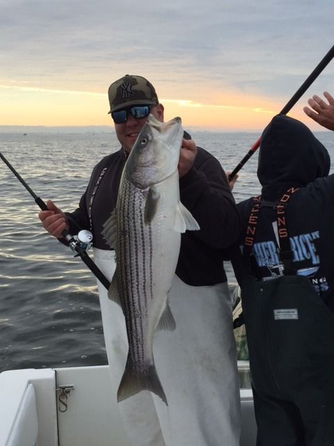 Ran our open boat trip this morning. A little difficult to get bait this morning but got what we needed and got on the grounds. less readings than yesterday but had the fist fish on within minutes. Picked away all morning and the guys were able to land 15 keeper sized bass to 24 lbs.