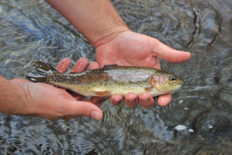 Got out wends. with a work buddy who moonlights as a wildlife photographer. Waded upstream(usual spots) about 2 miles. River was super active- tons of small minnows/fish- trout were feasting on them. Ended up landing 15 rainbows(prob 5 with some size- topping out around 15, and then rest cookie cutters) 3 browns (1 pictured, one maybe 5in but angry, and a 12 who slipped up before he deholstered his dslr. Also sat on a rock and watched some bows crush top water nymphs and other bugs under a tree. Bruce had some issues with depth but hit one solid one(his first on the Fly) and had a blast watching the bows check out his flys. Water was still super cold and clear. This was before the big front on Friday.