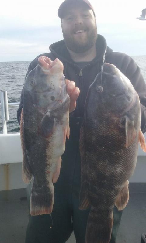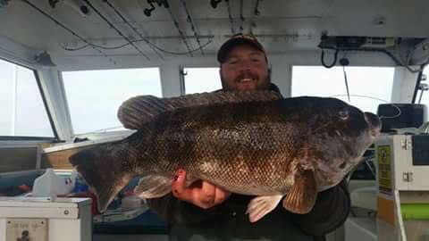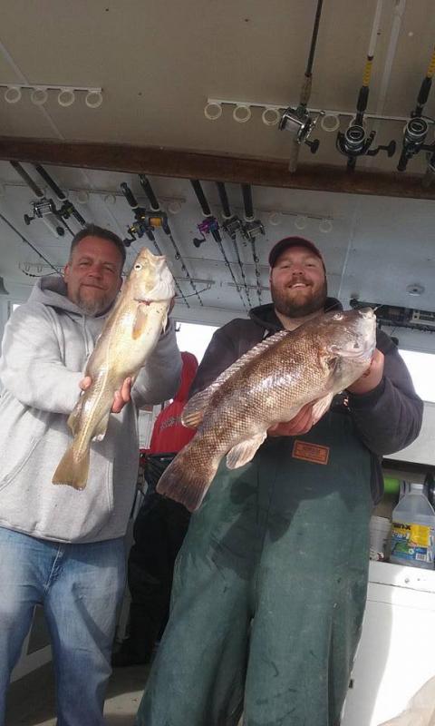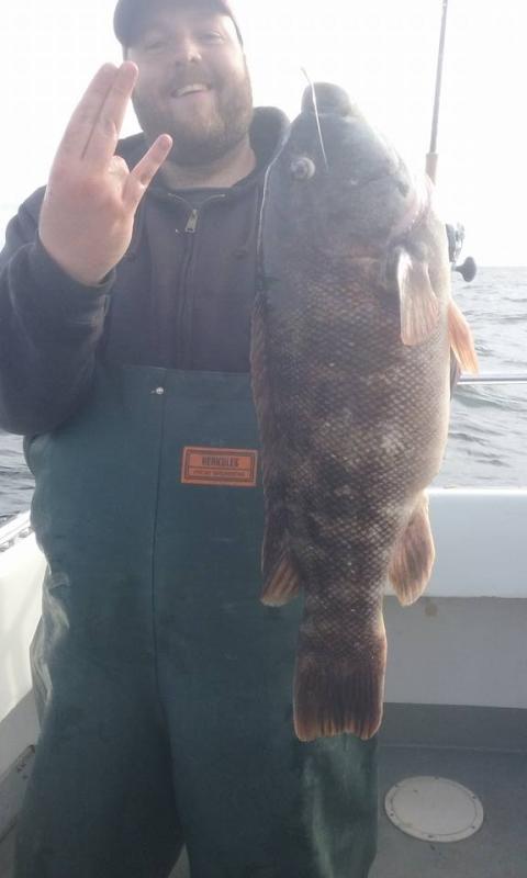 Tough day with Captain Hank,tons of current made it hard to work the pieces and bites were only in small areas of the boat. We would anchor up get a couple keepers than that would b it so we did a lot of bouncing around to scrape up what we could. Ended with 25 keepers,2 cod n 2 flounder as a bonus. I had my limit including my first dd since turning 30 a 11.5 as well as an 8.5, a 6lb & a just keeper to closeout my limit. Butchy got his pb cod, directa also foul hooked a nice codfish somehow & had 2 keeper togs. Jerry fished 18 drops & kept us out til dark trying to find the big chew they just weren't eating I was using 12oz most of the day in 65ft of water. The 11.5 was a hell of a way to cap off an incredible April of togging!