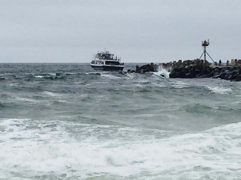 The boat being towed was the race boat involved with the tragedy last week. It was brought to Ken's Landing and hauled out. Yesterday's surf looked very, very bassy but there were no bass. I dream for that kind of water in November! The ospreys are just plain out cool. When the bunkers are around they eat well. The resurgence of the bunkers has been a major factor in the upswing of the osprey population. Good luck with inlet parking in the summer. Be sure to move your car on occasion since I think the PD marks tires during the day. Early morning is best anyhow because the boat traffic in the inlet is fierce from before sunup and throughout the day.