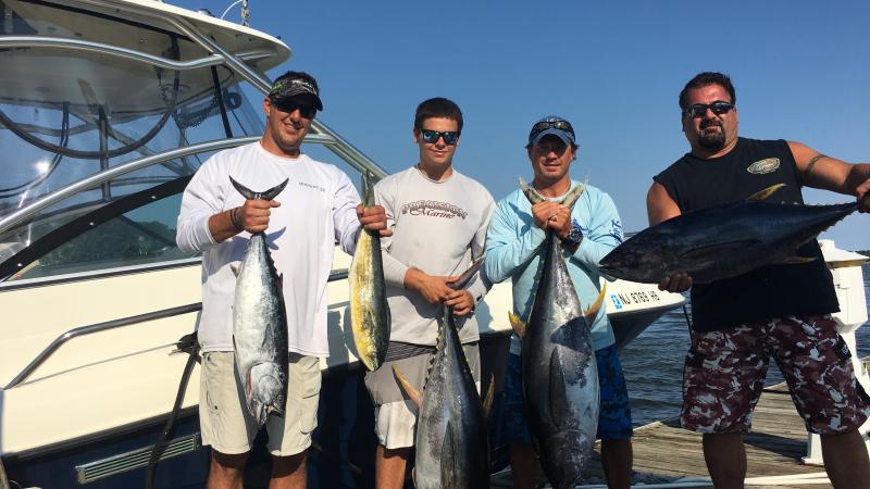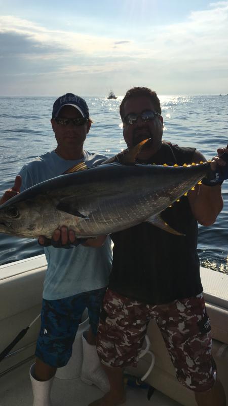 Had good buddies Paul, Alex and first time tuna fishingman Nick,17 and stud lacrosse player out. Fish where picky but with right set up we got em. AWSOME trip 3 yellows, false albie and mahi. Great ride there and back. This was Nicks first tuna. Great trip!