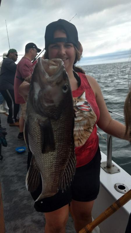 Excellent fishing for us today. Capt Greg ran the boat today and had good conditions wich he took advantage of. We fished some different grounds today and scored big! Many limits of Fluke and Sea Bass. The pool fish today weighed in at 8 lbs. 8 ozs. with contenders knocking at the door. Lots of big quality fish. We sail everyday from 7 30 am - 2 30 pm