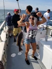 We had a very good day today, with sea bass , Blackfish, Porgies , and triggerfish, also we had three guys, who decided to bucktail fluke on the anchor And wound up with three limits of fluke up to 6 1/2 pounds. We have been catching fluke every day while we were bottom fishing , but as a buy catch fluking for those who fish for them Was excellent we also had several on the clams. Our next open day is Tuesday, and will be fishing for all of these fish again. So bring your bottom fishing rigs and Your bucktales and gulp bait call for information and reservations PS we have prime charter dates still available, and we will be running open every day next week. She Facebook for more pictures