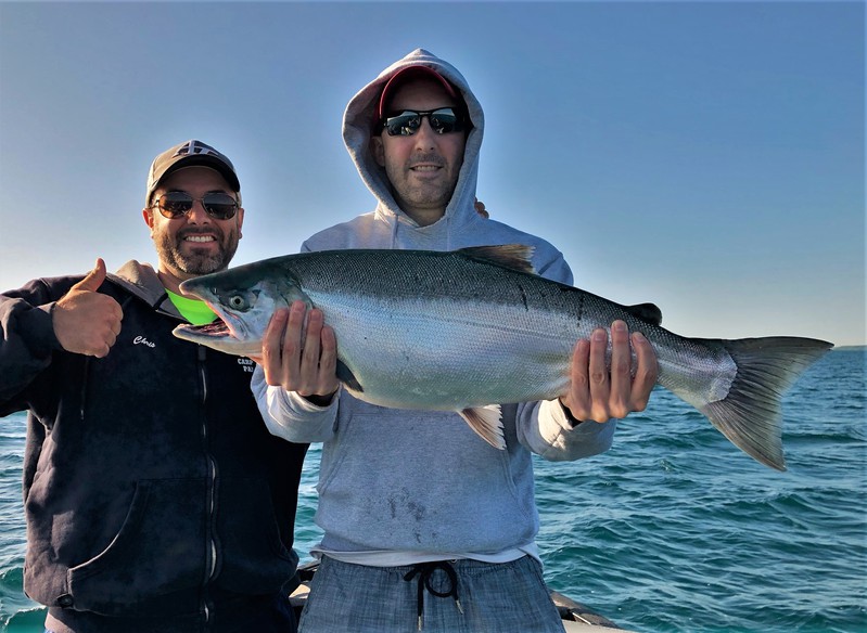 but here's some other stuff i haven't posted here yet.Headed up to Milwaukee WI a few weeks back for my buddy's bachelor party. Talked them into hitting lake Michigan with Eric Haataja before the drinking and shenanigans. Unfortunately we hit it the one day the fish changed up their pattern and we just couldn't find any of the huge kings and browns he had been catching recently, but we managed a nice catch of some big cohos and lake trout. Hit the local waters when i got home and was greeted by a pretty sweet, summer BIG bass bite. They were suspended 5-15ft under the surface and seemed to want as little as possible action on the lures! Very strange bite but after landing 5 bass, with 3 being quite big North Jersey specimens...i'd say that was a pattern! My friend tried to replicate it the next day to no avail and I tried again a few days later with no luck...go figure! One of the most frustrating, yet driving, forces in fishing is the rewards of figuring out a bite only to have it mysteriously vanish forever due to some unknown variable of nature well I enjoyed it while it lasted!And last but not least...you know i did some lake trout fishing ![]()