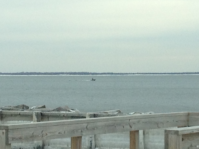 This is from yesterday at Leonardo. Two crazy bastards in a 12' john boat launched. I have no idea what they where doing. Fluking?