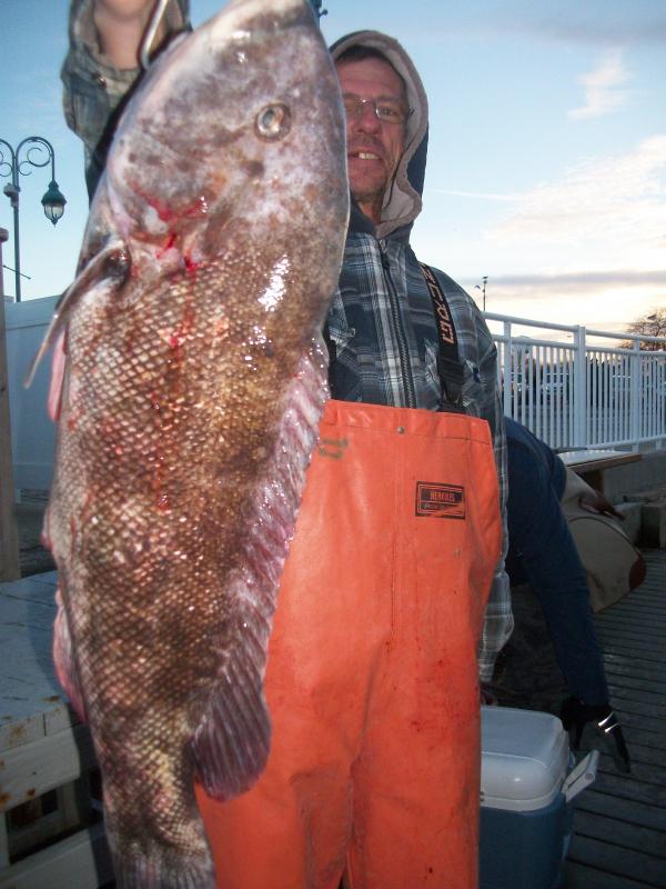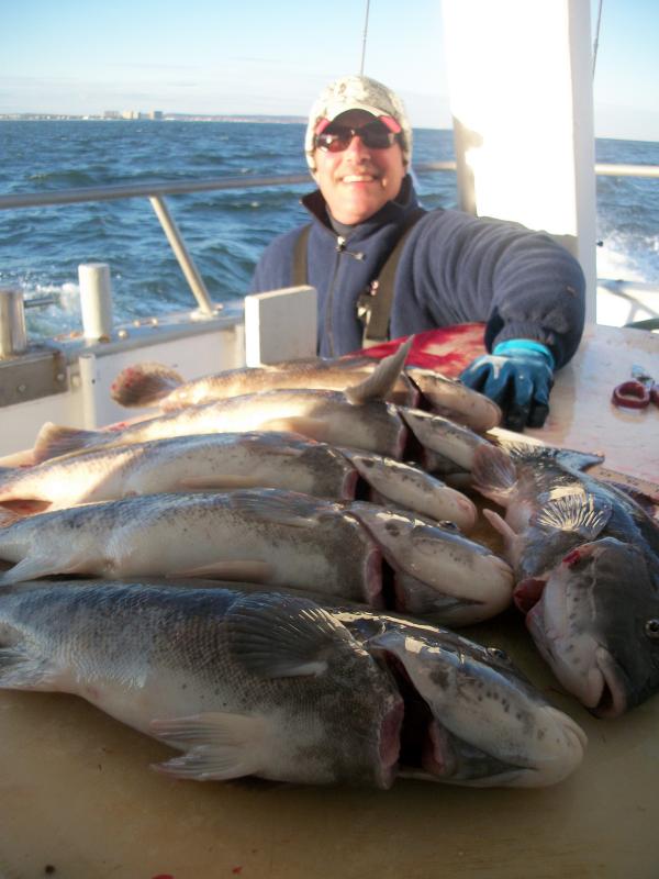 Nice day to be on the water, ocean was fairly flat, only a little wind. The blackfish were not aggressive as they were in the past days. Hi hook was 5 keepers, some had 3-4 others 1-2 togs. David T. of Monmouth Jct. N.J. had a nice 9 lb.10 oz. tog.. Some of the group went home with empty coolers. Today we also gave the group an extra hour of fishing time..