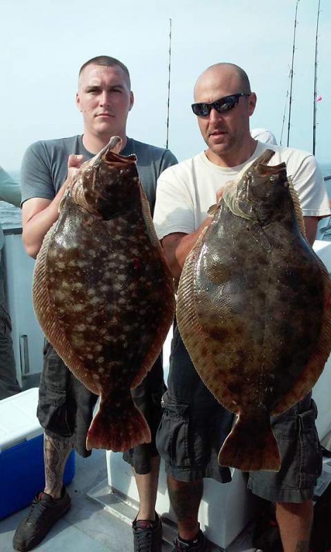We left Saturday night at 10pm and arrived at the boat at about 3am sunday morning. After stretching the legs a bit we tried to sleep but that was stopped by a swarm of people showing up at about 4am to line up for their spots.. First come First Serve. Our Group was as follows; Keefe, JP, Jerry, Joe, Paul, Dr. Pete, Gabe, Vic (as well as Alex(MVP) Sunday- we started heading out to the back end of Nantucket island with a 2 hour ride but well worth it! We slammed the fluke Keeping 41 fluke over 3 lbs and 5 jumbo seabass! Sunday was the day of Quantity. Sunday night- went to a local place that Matt the mate told us about. The owner Tim cooked us up a ton of our fresh fluke 3 different styles with all different sides family style. Just Amazing! Than came Monday- Quality over Quantity today! First drop..Bam!! Bucktailboy Joe nailed a 14.9lb(which is the monster that I was holding in my pic) and Bucktailboy Paul nailed a 12pounder right in the same spot!! Both fish would have taken the pool but those two never contributed! Keefe almost had a DD with a 9.9lb. Vic had about a 13lber at the boat but the Mate dropped it as he was lifting it up with the gaff!!! Could not believe it! 32 keeper fluke on day two but just amazing size with most fish over 5lbs. Folks, I am not joking about the sizes of the fish! I have others on the boat that can attest to the size!! MVP-- he cleaned up both days with monster fish! Palmers, John(tonys brother)-- we had a great time with john and his buddys in the front of the boat!! SOMEONE GET THE CAMARA!! MATE!!! CAMARA!!! Those guys also cleaned up!! Bucktails-- Def. worked as the bucktailboys and John palmers team crushed the fluke day one with the tails! Dragging Bait--the majority of the fish on the boat (about 300 keeper fluke per day) we picked up on huge pieces of bait. on day two the current was rippin and we were drifting 10 oz bucktails but mostly bait with 14-24oz of lead! NOTE- we are going to have a private 30 man charter on the same boat next year. The cost will be a bit higher but well worth it.. Layover at night on Nantucket Island so we are right on the fishing grounds. 2 days of awesome fishing. We are accepting requests for anyone who may want to be put on this list as I am sure the Bucktailboys, Johnny Palmers and MVP's group will need a couple of additional spots to be filled. Please let us know! Thank you guys for the memories. JP Pics to Follow |