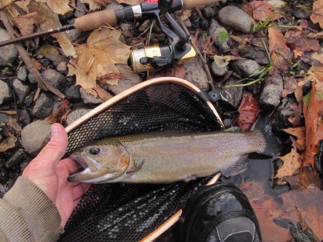 . Hit other spots well below Clinton Falls but couldn't find any takers. Ended up on the main stem of the Raritan river and found some good trout action, all fish released to fight another day. |