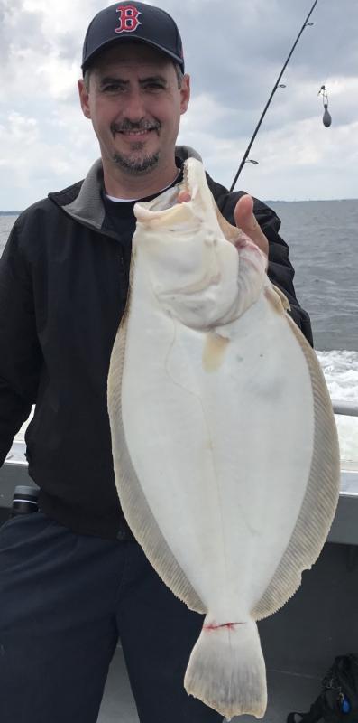 Father's Day aboard the Down Deep Bull we scraped the plan to Seabass the last day of the spring season due to conditions. So with another big crowd of great new and returning guys and Dad's we ran another 6 am Jumbo Fluke trip. Made our way to pound some little pimples, pieces & piles. The crew aboard started catching shorts along with some beautiful keeper Fluke mixed in that kept the rods bending. Eric Osbun was aboard, his first time and his first Fluke trip ever. Naturally his rod doubled over with enormous head shakes and we all knew what was coming up. Gene guided the net under his 10.1 lb. Jumbo Fluke, great fish Eric. Congrats and high fives all around from all aboard as his Fluke bested the 9 lber that was in the lead for our annual free custom rod giveaway for the heaviest Fluke in the 2017 season aboard both boats. Come out and let us put you over your PB on our true drift Downeasters that Jumbo Fluke can't resist. It only gets better everyday from here, book now. Thanks guys for sailing with us again and all others who continue booking Jumbo Fluke, Jumbo Ling, Cod, winter Flounder & fall Jumbo Striped Bass, Tog & Seabass trips going forward at a rapid pace. Don't miss the next open boat trips -