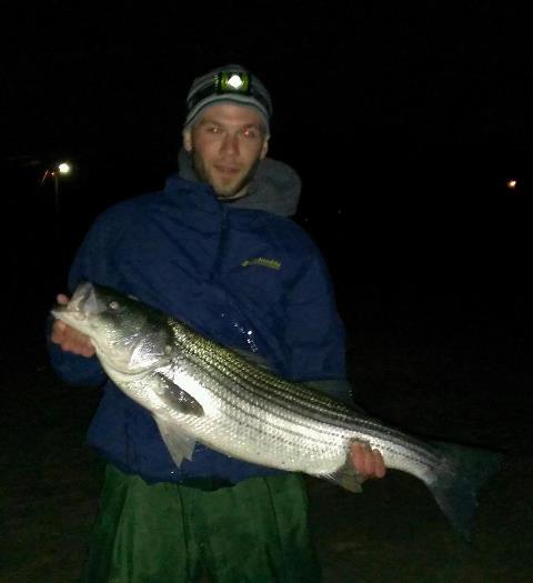 The bay proved fruitful for me and buddy last night. He nailed a 30 lb fish that measured 38". I had a 33" that was roughly 15 lbs. From the shore... Clams.