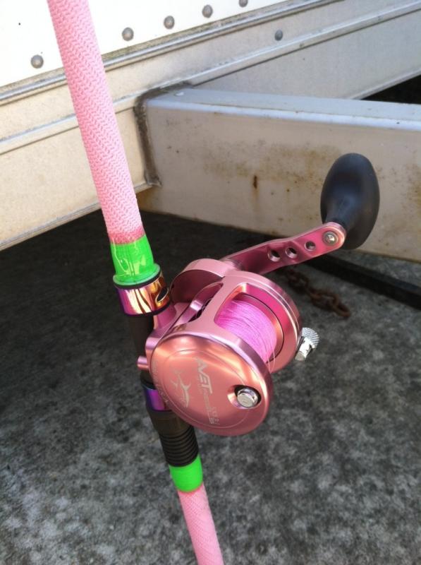 My daughter loves the wild color rods I make for myself and wanted a fluke rod for her 21st birthday, that will stand out on the party boats and must have pink, so I built her one that stands out.