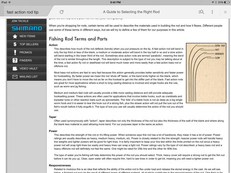 Power, taper, action . Power how much weight blank can comfortably handle . Cast. & drop weight varies significantly. Taper , how blank constructed . Thinner Hvy wall or thicker thinner wall. This reflects how blank will flex & recover . Action within this taper is where blank is designed to bend under a load . Power has little to do with action. U can construct almost any blank to exibit any range of actions . That being said I favor fast action blanks in any power rod I fish. They require less angler energy to fish in a myriad of situations . Bucktailing is one since a fast action rod with proper within specific line class will perform very well when bottom fishing . Many prefer a full parabolic for for tog which is fine since u r primarily fishing shallow . Those rods will kill u in deeper water where bigger fish r found & never have they been my choice for any big game applications in gts! ![]() |