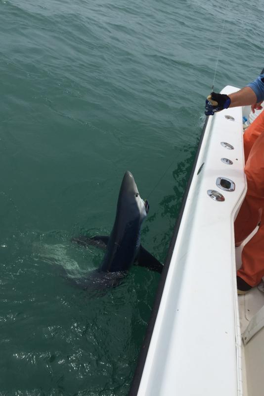 Had regular Oscar out for a mixed bag, got him limited out with seabass and then went on the hunt for sharks. After a long drift came tight on a 7 foot blue, wasn't what we were looking for, gave Oscar a good workout and got him ready for offshore fishing this summer!