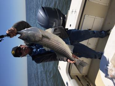 Launched the Z for our first shot at the bass and didn't disappoint. Pulled some gear for a couple of hours with no love. Made haste on the bunks and began smacking 'em for a couple of hours. Netted 11 with biggest going 25lbs on the boga. T-bone got us started as usual, Donnie had early action too. Skunk hypnotized them and I wasn't going home till I got the stink off. Finally getting 2. Kept our limit for the table and released the rest. Boat ran like a charm and hasn't lost her mojo. Good trip with the homers!