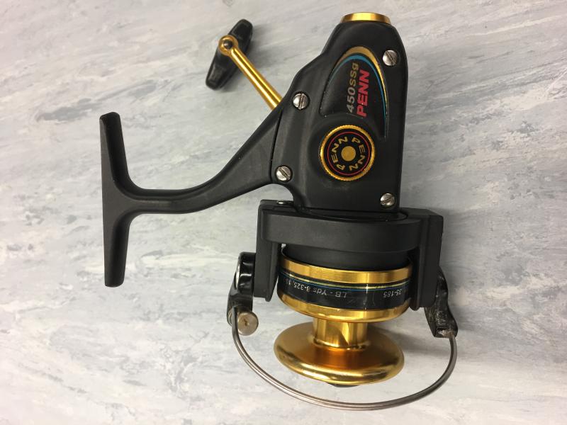 Penn 450 ssg excellent, no tarnish on spool, smooth, tinybit of paint loss on the bail arms. See pics.