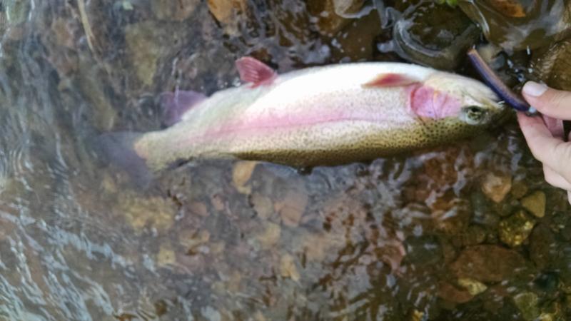 Sunday was cold and windy, so instead of chasing albies I thought I would check out the famous Raritan River. I want to thank you guys for the suggestion. I went to North Branch Park because that sounded appropriate and I had no idea where else to start. The park is very nice but the fishing is not too good. There's about 8 to 12' of cliff down to very shallow water. I walked along the river downstream until I came to a weir. I got a big fat rainbow and two smallmouth under the weir. Then I walked upstream past the park to another place where I could get close to the water and got three more fat rainbows, all on a funky looking spinner/rapala combo I found. The fish were all in the pro-creation mode, one was oozing eggs.