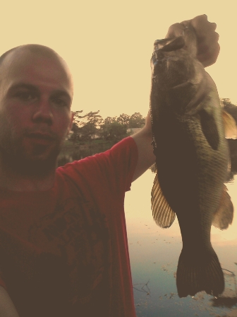 Hit the honey hole Fri after work for 2 hours and then Sunday evening for a bit over an hour. It was a good 3 combined hours of fishing. Throwing just senkos--5" Plum Apple on 4/0 EWGs--I managed 8 on Friday and 5 Sunday. On Fri I was rewarded with a fish that just about 5 lbs (red shirt pic). On Sun, I was rewarded again with a 3 & change chubby girl (blue shirt pic). The rest were "dinkish". All hit fierce and in shallow water less than a foot or so...And close to the banks.