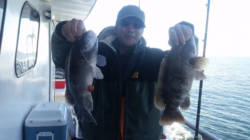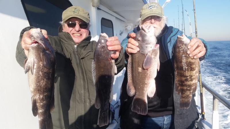 Here is the last report from our last trip,,,forgot to put it up but anyway we had to go to dry dock to repair a busted shaft,,,,while I was out I decided to do both shafts new just to make it right(and I will take the old one redo it and have it as a spare) so along with two new prop shafts and some other new things we added we are ready to fish again,,,boat is going back in the water tomorrow...While we were out I decided to take the time and do our Coast Guard Hull inspection as well so we don't have to haul the boat in October now,so as of now we will be ready to fish again Thursday morning,,it will give the ocean a day to calm down anyway.,,,really rough out there today..I will let you now tomorrow when we get back !!!!!! ,,2-2-16 Wow,,,was that a nice day...fish were chewing to,,Good life on the bottom and we had decent bites all day,,,We slowly just picked away at some nice fish,,I think Sal had the pool fish,,,He a 10lb,fish,,and three others in the 5-7 lb.range..others had a limit as well,,,some 1,2,or 3 and some just had shorts but overall we had a good day,,,Check out a few pics,,,,,tomorrow we are not fishing...high winds rough seas so stay home,,,,Thursday looks like the next nice day....