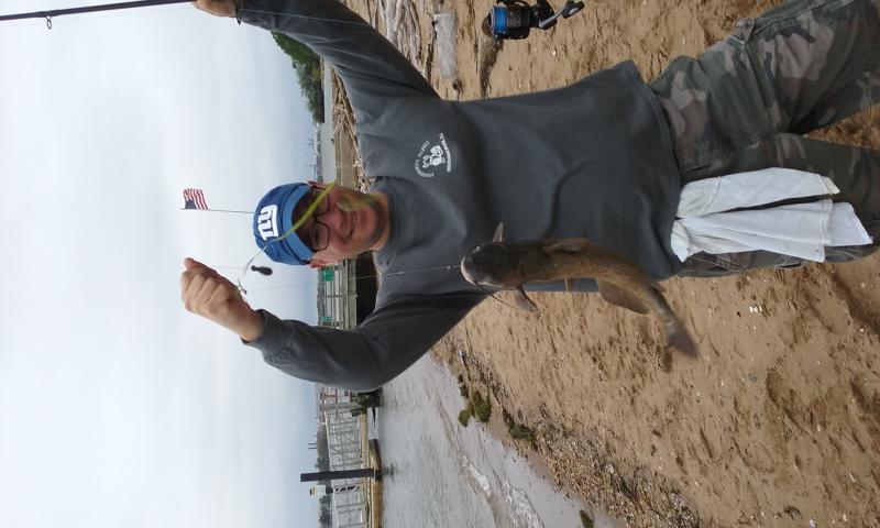 Had a charter planned on the monger today but got blownouy so me, my brother butchy & fisty frankel (harpoon) hit the dirty d. Me & butchy arrived to the spot at 6:15 & had big time grass issues so we moved up river a bit & immediately started banging perch then the kitties came to play.constant bites on liver & shrimp on solid & clean channels. Frankel showed up around 9:00 & of course slowed the bit but we had some flurries still of kitties, an eel & 1 tiny bass. Everything on liver & shrimp because if u put a worm on the perch had it off in seconds. Total for the day was over 20 cats, 30+ perch, 1 eel,1 bass & 1 chupacabra. Think we caught more than anyone did in the ocean that's for sure!