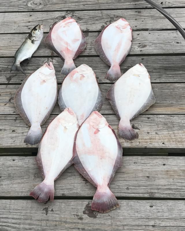 Was supposed to head offshore but the forecast wasn't looking good in the morning so we were able to get a couple to go fluke fishing. Went where we had em the day before and boy what a difference a day makes. By the second drift we had 4 keepers, 3 of em at the same exact time and then the boat traffic came and it shut down. We bounced around quite a bit looking for a patch of fish and then the drift got pretty fast and then by days end we lost all conditions. The 4 of us wound up with 7 keeper nothing big.