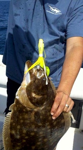 It's amazing 3 fishermen all agree on one thing. Bucktails with swing hooks work best. After reading the thread that Kevin Bogan started and reading Jersey Coast's comments, I too agree that swing hooks will greatly increase your chances of landing a doormat Fluke. Swing Hooks do not put as much pressure on a Fluke's mouth. Fixed hooks have a tendency to create a hole in the fishes mouth. A few big head shakes and there's goes your doormat. The attached photo is a great example of the damage a fixed hook does to a Fluke's mouth. I fish both fixed and swing hook bucktails but I can tell you I have lost more big Fluke on the fixed hooked model. All of fixed hook bucktails that I fish have stinger hooks to increase catch ratio. Link below for a better photo.
