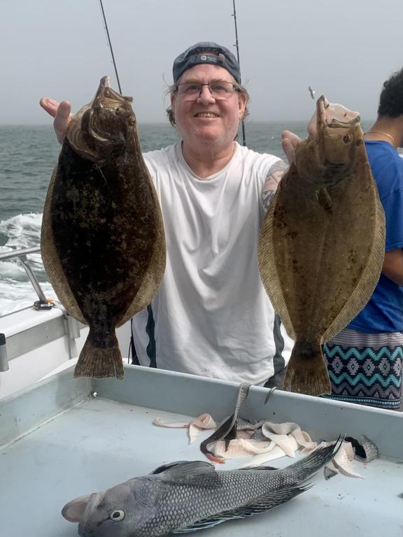 Onboard the Miss Montauk II ~ Mystery Man had today’s pool winning Fluke weighing in at 9.5lbs ~ Awesome!! Great fishing ~ A boat limit today! Give us a call if you’d like to join us on a trip. REGULAR FULL DAY FLUKE TRIPS ~ LIMITED TO 45 ANGLERS 7am-4pm $130 per Angler. ALSO OUR SPECIAL 12 HOUR FLUKE TRIPS ~ LIMITED TO 30 ANGLERS 6am-6pm $195 per Angler. ALL TRIPS BY RESERVATION #631-668-1545