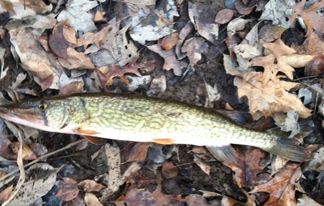 Once the trout stocking ends in that stretch of the Passaic, there's only a few species left for which to fish. That's a good sized pickerel for there. I've caught smaller ones and also a few small red fin pickerel near the RR trestle.