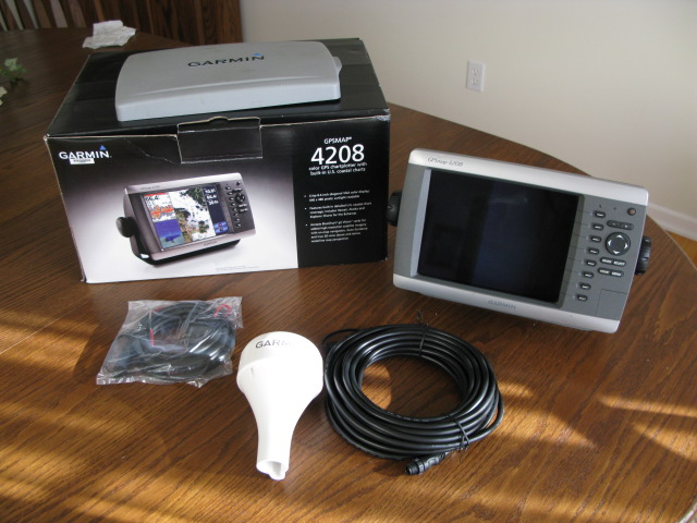 Upgraded to a larger unit so this one has to go. Garmin 4208 unit with new GPS antenna, box, cables and mounting bracket. This unit is one of the easiest GPS to use with a very user friendly intuitive software.