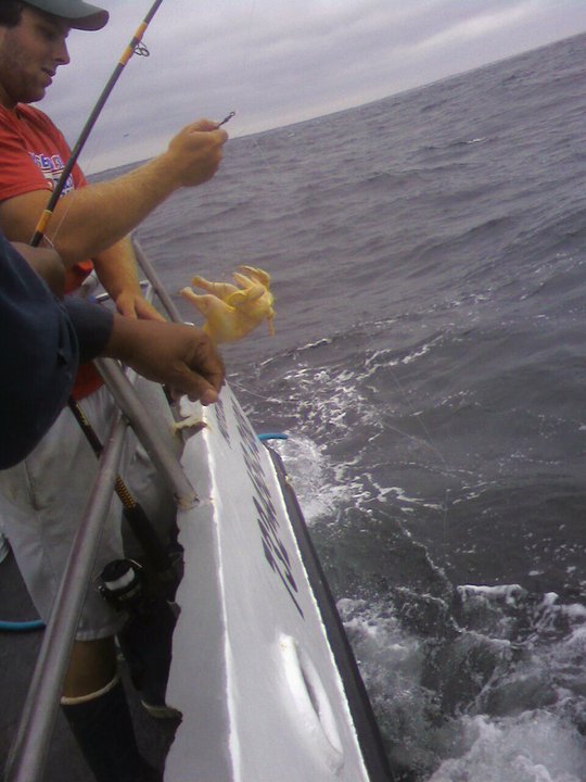 Half day fluking on the J2 and a man was fishing with a whole chicken for fluke. He had the chicken strung up like a puppet. Hysterical!