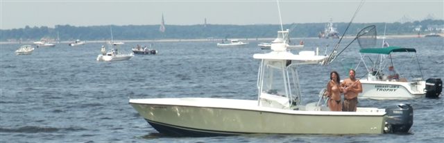Googan with a casting reel on a spinning outfit...and his buddy with a spinning reel on a casting outfit. They felt silly when we told them they had their equipment mixed up. On a PB out of the Highlands, when Daisy Duke and her three friends blast past us on their pleasure boat...and flashed the crowd...and returned for another one.