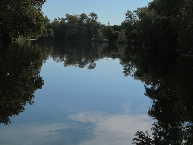 Don't be fooled by the pics. The Raritan is your average East coast river, wide, flat, shallow. Average depth on that day was about 2 feet. Some spots 3 to 6 and maybe very few spots deeper than that. As shallow as it is, the river still seems to hold plenty of fish. Water started getting deeper down by Landing Lane bridge in New Brunswick.