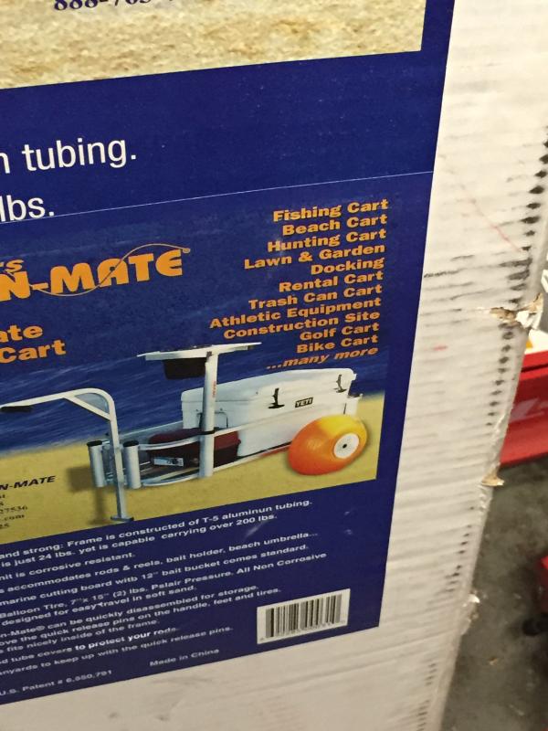 Selling this for my Farther in law. He has a brand new, never even seen line Stella 8000SW for sale with the box, he simply bought too many reels and this was not needed. He also has a Fish n Mate Senior beach cart with the Poly wheels for sand. Comes with 8 rod holders, bait buckets, cutting board area and much more. This has never left the box or been opened as he got 2 for Christmas. I ran out of attachment space but I have more picks of the cart in the box.