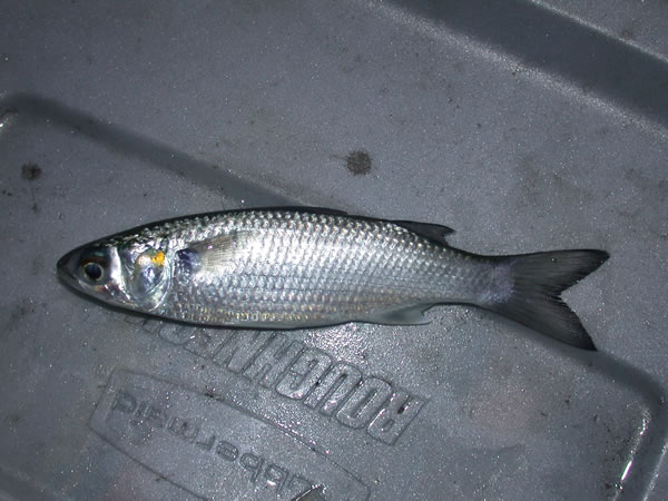 We can get the tiny guys in beach seines but forget about them once they grow to a few inches-they just jump over the net-if they get the chance. I have been fishing a point of land and watched mullet heading for the edge of the corner and have predators-stripers/bluefish just waiting for them. It's spectacular when you're at the right place at the right time. http://www.sms.si.edu/irlspec/Mugil_curema.htm