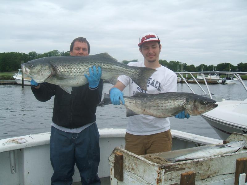 it was a good trip today for anglers jeff, joe and ray, good action with the blues but in addition joe hooked into and landed a nice 30 lb bass and ray landed a nice keeper as well, overcast skies for most of the trip but this group fished hard and had a nice day on the water.