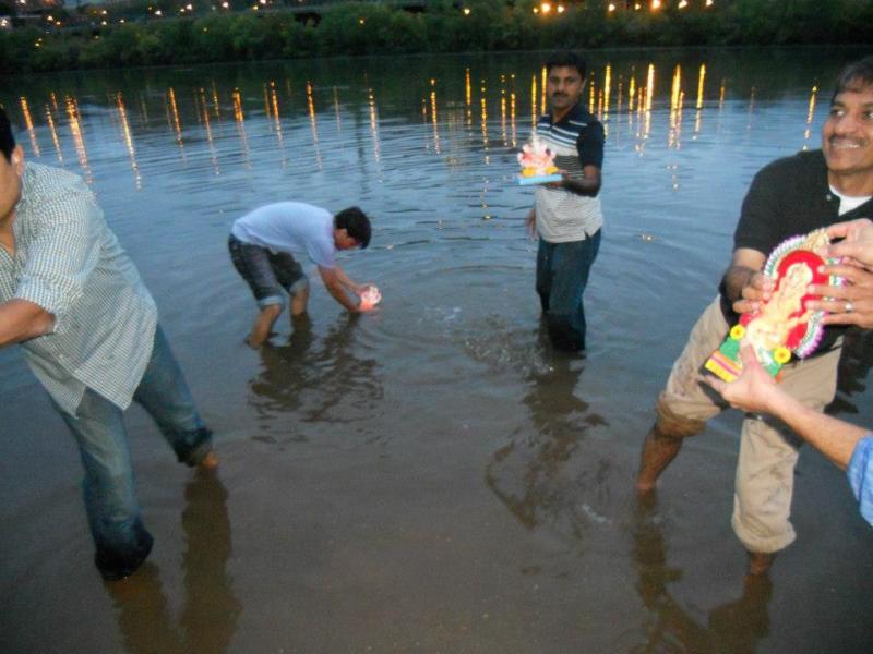 Suma Foods sponsors a legal event, with all the necessary permits, there. The deities are only immersed in the river & not left.