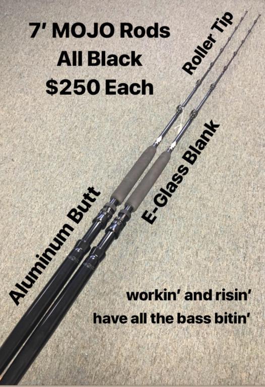 We offer an all black standard rod starting at $195 and the deluxe (detachable aluminum butt, roller tip) for $250. Add $10-$30 for colors. Here are some photos of MOJO rods we have ready to go in the shop at the moment. We can build custom rods in about three weeks. Last edited by Kevin Bogan; 01-31-2019 at 08:08 AM.. |