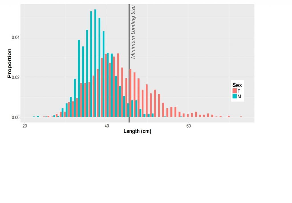 Translated, not only are we harvesting almost exclusively breeders, every time size limits are increased we're increasing the harvest of larger females with considerably greater egg production capacity at what could conceivably be a 10:1 ratio. Couple that with the commercial fleet harvesting concentrated schools of migrating fish during their fall / winter offshore migration and spawn and NMFS / ASMFC wonders why the biomass is trending down over the last 15 years. You can draw your own conclusions but the data strongly supports a gender imbalance created in the biomass by size increase legislation over the last almost twenty years compounded by commercial harvest in the fall / winter months during the spawn without understanding the negative impacts that harvest has on overall egg reproduction. It's obvious for every female harvested we lose the immediate benefit of that years egg production. Larger question in my opinion is how many eggs already released are destroyed by continued netting and what impact does the harvest have on stressing out the biomass, potentially impeding it's ability to reproduce. No one to my knowledge has that answer and it arguably might be one of the most important pieces of the puzzle.