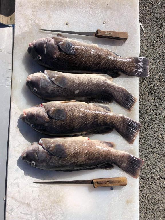 Braved the Northeast blow early Saturday morning and slowly made our way to one our our favorite Tog pieces. After a few small anchoring adjustments it was game on. We had a non stop drop and reel Tog bite all day. We had aboard two young togaholics Andrew and Cooper who caught em on rigs, jigs, crabs, clams and even on avas while jigging up small blues that were following up our blackfish. It turned out to be a beautiful day and a memorable trip for all. Released all but our limit and returned many giant seabass for a later date.