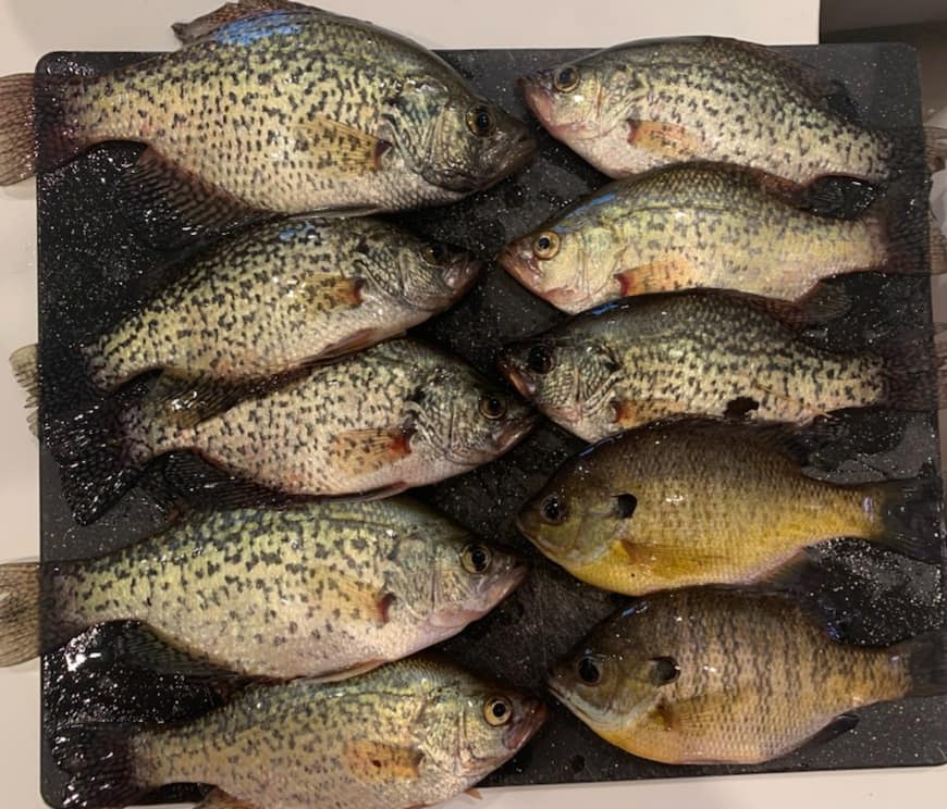 Sacalait are hungry!!!!!!! Kept 8 between 9.5-12.5 inches released a bunch more plus 5 or 6 in the 12-14inch category who's bellys were busting & were loaded with eggs. Also kept 2 bigger than my bear paw bluegills. Lots of little big mouth catfish getting active as well, also saw the biggest pickerel of my life pretty sure the thing could eat a child. Fish wanted plastics fished on plain hooks twitched just under surface & then fall every few feet, did not want the jig n float at all. Had a good ole fashion panfish fry for dinner bring your own tartar & hot sauce!