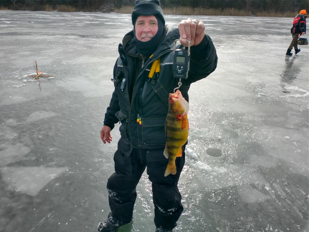 Went out with a few friends today, drilled some holes. Action was a bit on the slow side but friend Mike caught this beautiful yellow perch. 15", 1.6 lbs. Biggest perch I've ever seen, girth on the fish was pretty impressive. Congrats Mike on a PB, beautiful fish!