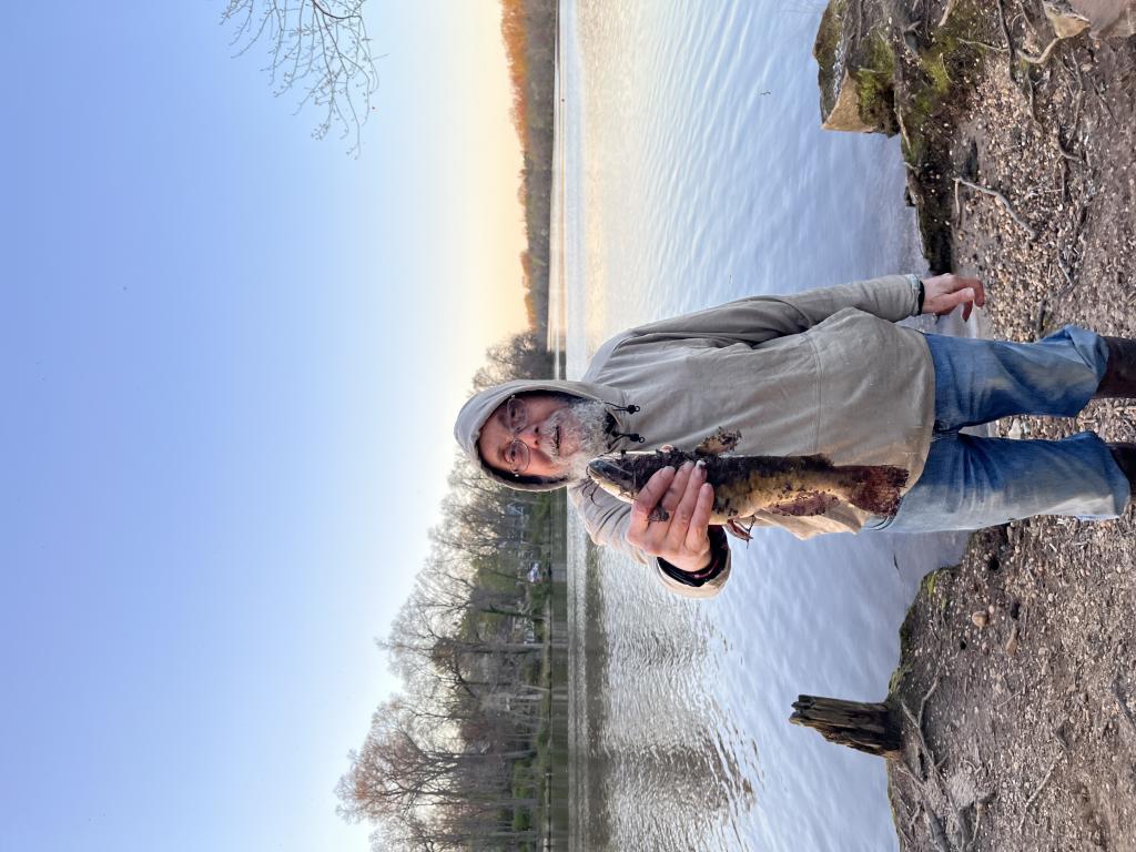 Went fishing 🎣 in 56 degrees Carnegie Lake this evening on a cool, sunny day with a strong west wind. More than 20 other fishermen were there. That’s way too many. I threw out old, slimy canned, whole kernel corn for chum, then caught and released a 10” white perch while ultralight jigging with two lb test line. Hooked a big carp with corn 🌽 bait on my brother John’s Shakespeare Alpha 50 spinning outfit but it swam into a downed tree, broke my 20 lb test line and escaped with my rig. Just before I quit, I caught and released a 14” brown brown bullhead and 14” white catfish simultaneously on two different corn 🌽 rods. I applied for my 88th NJ Skillful Angler Recognition Award for the bullhead